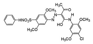 IUPAC 이름: N-(4-클로로-2,5-디메톡시페닐)-2-[[2,5-디메톡시-4-(페닐설파모일)페닐]디아제닐]-3-옥소부탄아미드